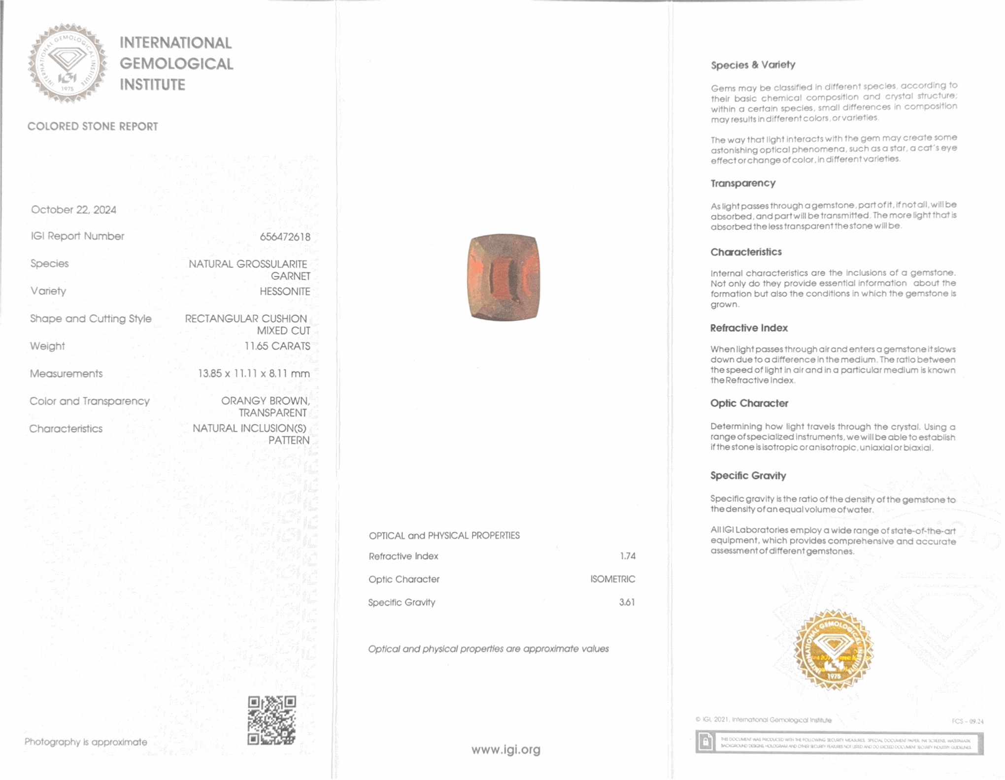 Hessonite (Gomed) - 11.65 Carat (Ceylon) (IGI Certified)